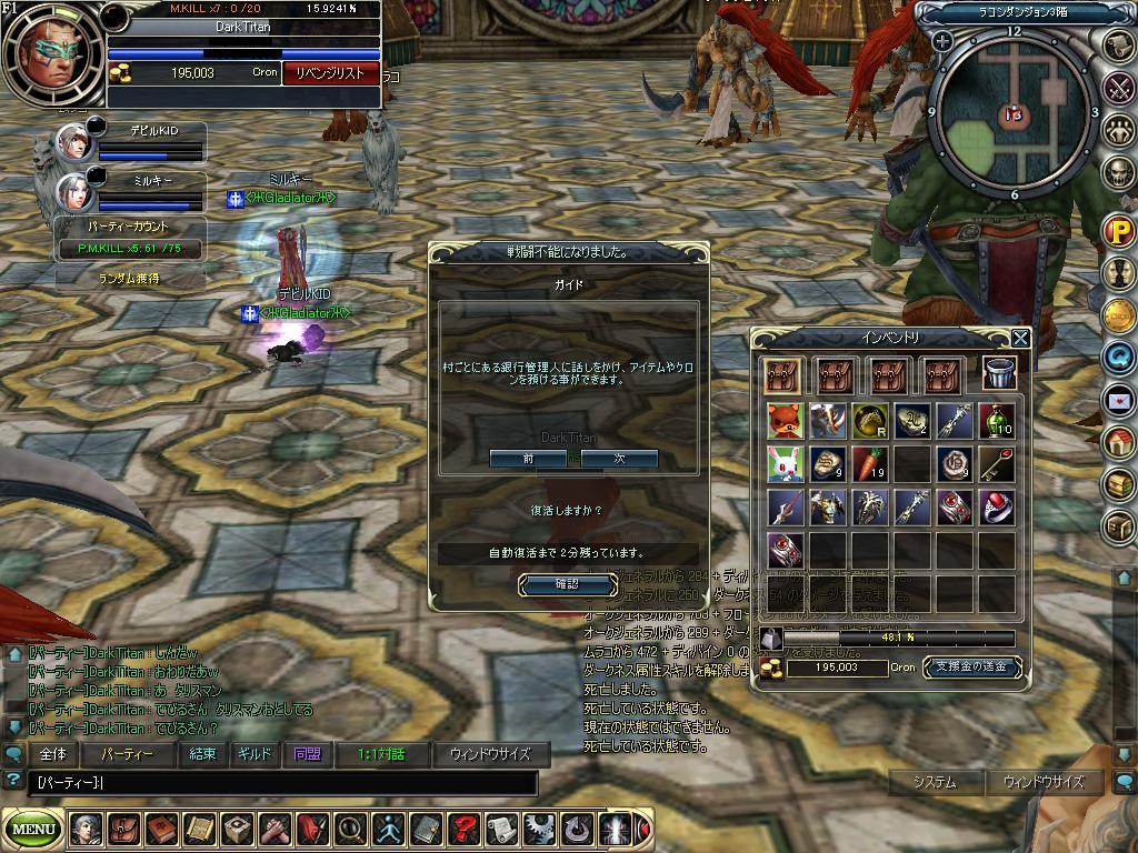 少し戦闘して 落ちるという事で解散しました。