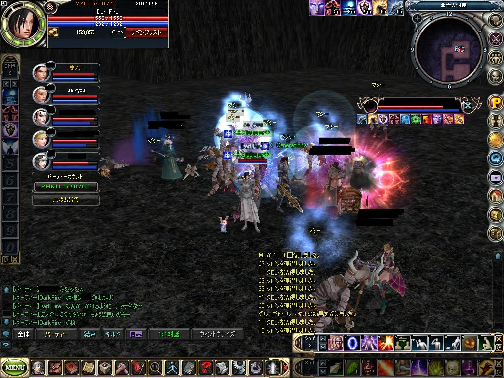 途中PKの邪魔が入ったものの、悪霊マミー部屋空いてるのを確認して、移動メイジ2名のWファイアPTで ガシガシかりまくり せいきょうさんLV40達成しました。