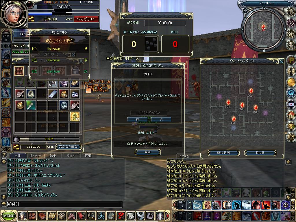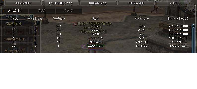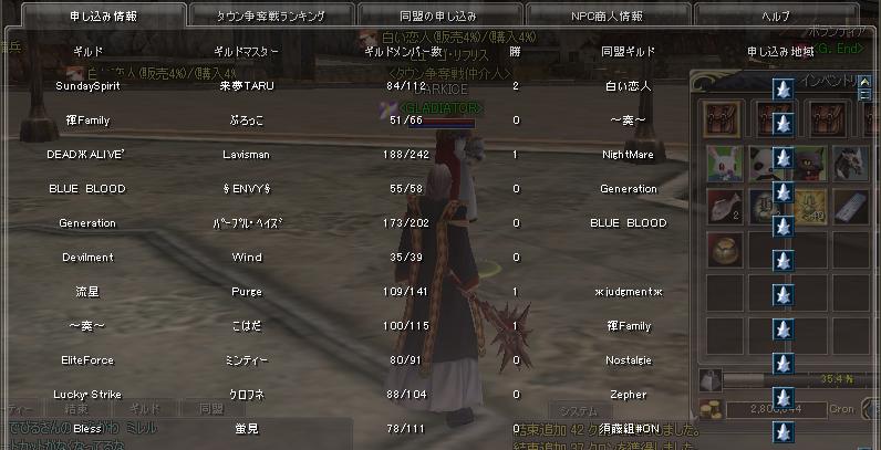土曜日は旗とりで動き 平日は普段予選リーグみたいなものだと思ってますが、昨日はちと違う感じもしました。 とりあえずやる気のあるエントリーされたギルドは↓