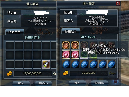私のいたUOってMMOだと取りひき掲示板があって 高額の取引とか けっこうすんなりすすんでたんだけど ROHANにはないので露天のみなのよね・・