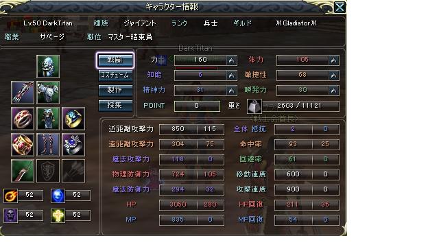 ジャイアントの場合通常 力系 体力系 敏捷系に分かれるらしいですが、タイタンの場合、元は自分の結束の人遊ぶ為に作ったので PT重視の力仕様でデュアル装備使用タイプです。