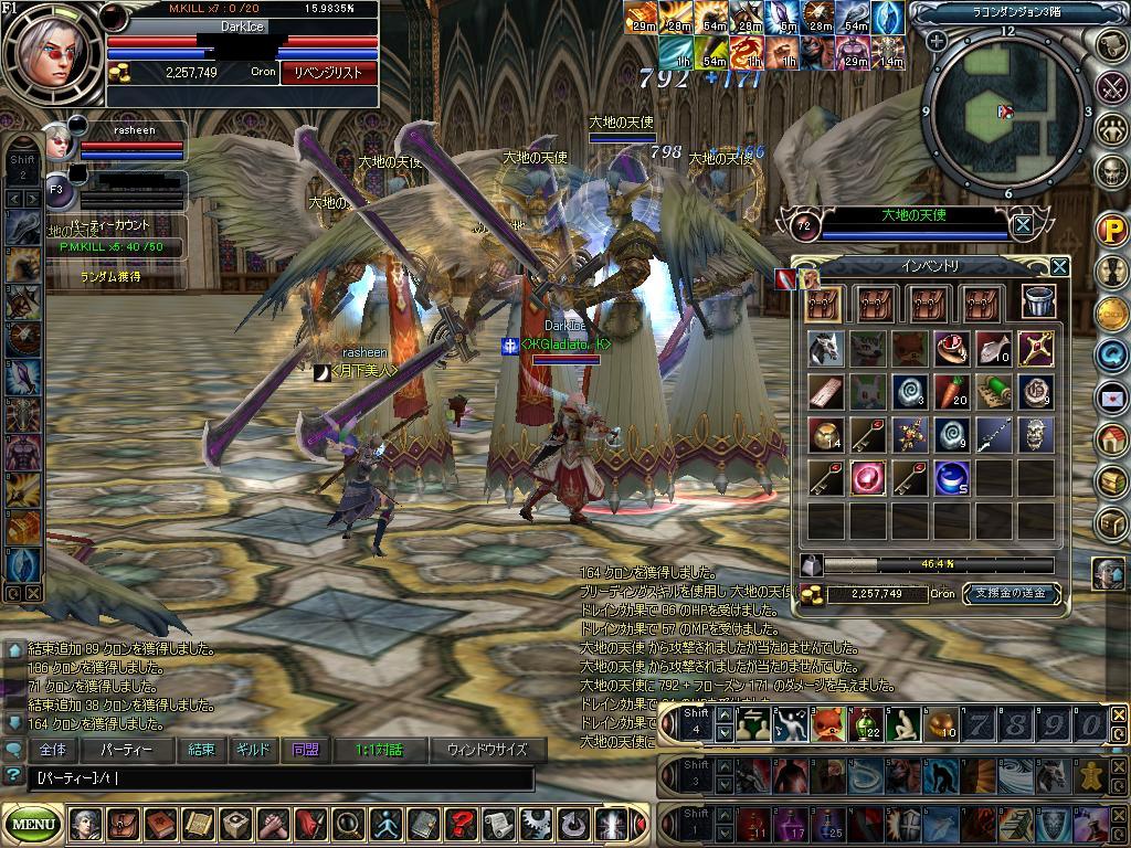 ルルイエさんの最近お好みの 六角天使南西の最奥部屋へととりあえず移動、こえびさんの足があるとかなり楽なんですが、それでも最奥にいく難所の天使のところで、須王さん撃沈!