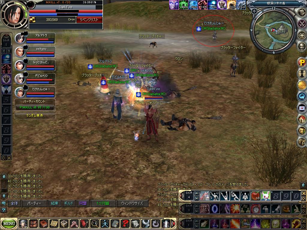例.7人PK(マーダーカウント残3)、LV6のマーダーショットのダメージ