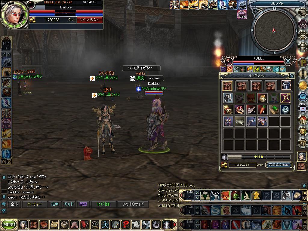 0524evestart.JPG昨日は 9時になっても誰も暇人いないようで聞いてみるとすでにギルハン2PTで動いてたようです。