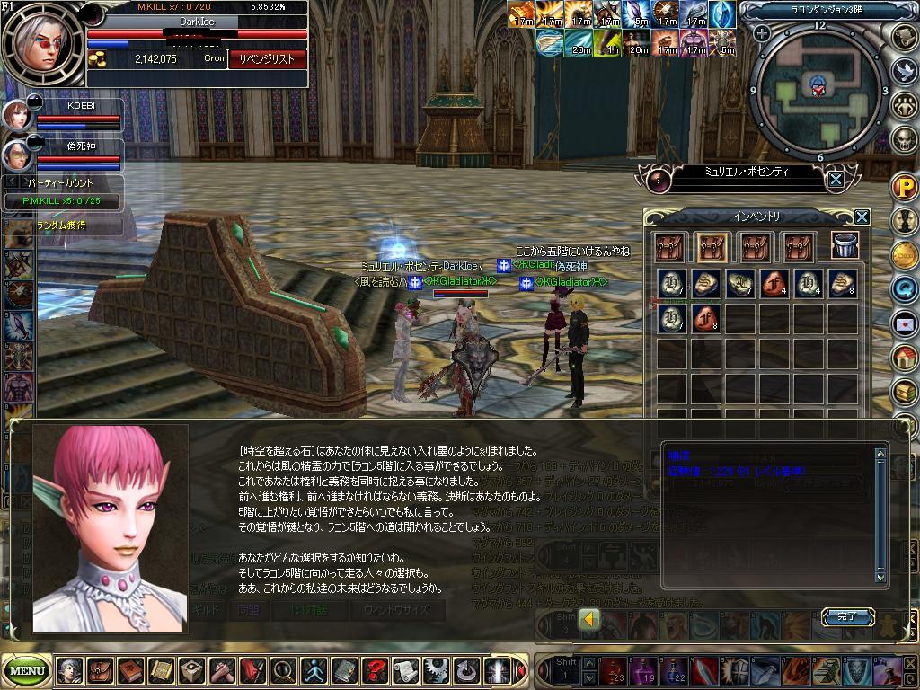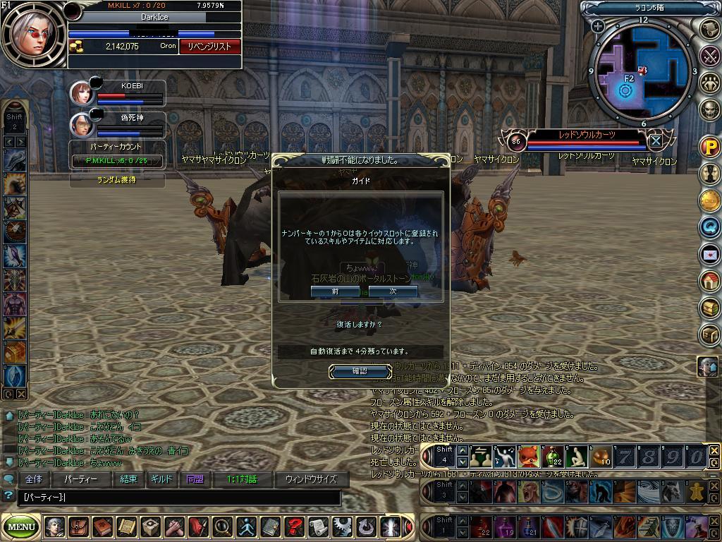 昨日はしばらく ほうっておいた5F入場クエ進めました。 コエビさんと死神さんの私とのPT率一番高い二人と共に後半戦ふんばりました。