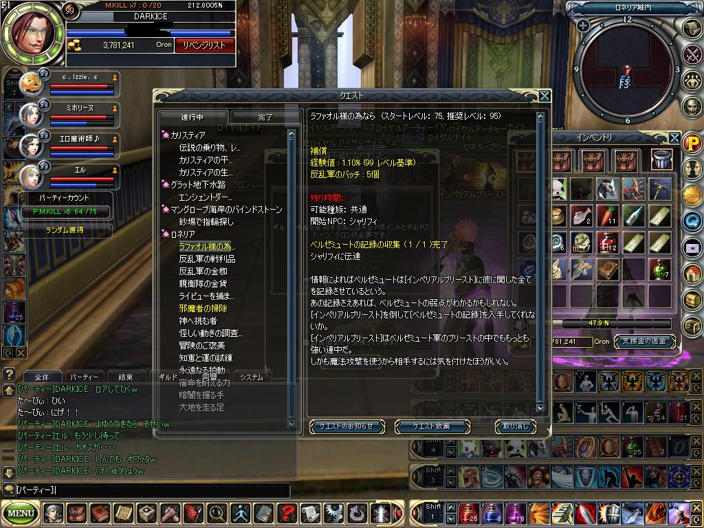 という事で しにがみさんINしてきたので 2画面解除して城内クエを進行