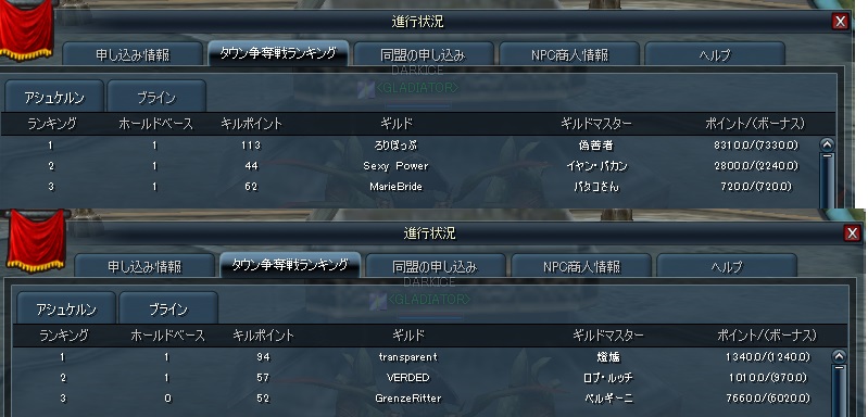 まあ 現在はタウンも平日もいい感じなので あとは まったりギルドの勢力がこの先どうなるかって事かな・・・雨粒が今度のメンテで終わり 次からが苦難の道?w