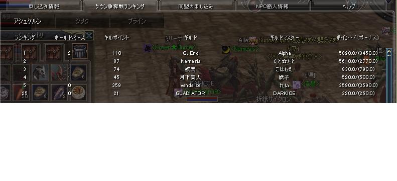 エンドさんの勝利 まあ キル数自体はバンダさん↑なので まだまだわかりませんが、 今回は16日間なので体力持つ側が勝つ感じかな・・・