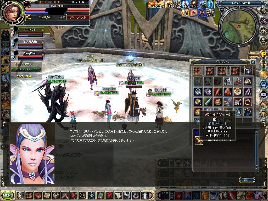 初めて 生命スクロゲットです。 2時間HP5000UPの タウン用アイテムゲットです。