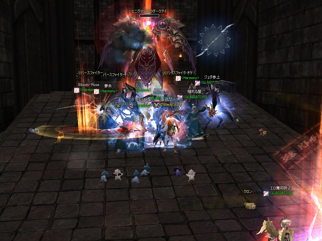 武器庫に着くと ボス沸いてたので 始めブレスに連絡したけど サブPT中との事で、エルさんに連絡雷電のメンツが数名きました。