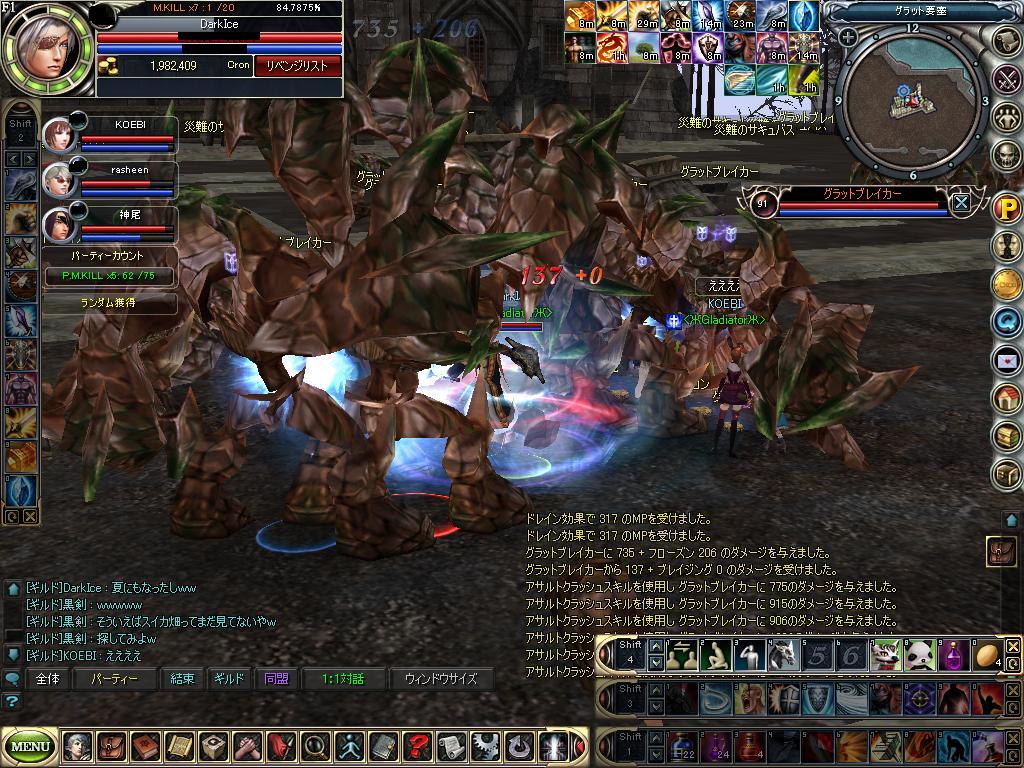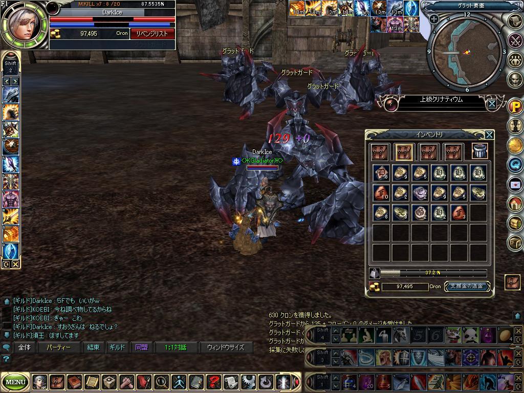 大量にあった鍵の処理もほぼ終えたので INしてきた神尾さんとらしさんとこえびさんとで グラッドいってまいりました。