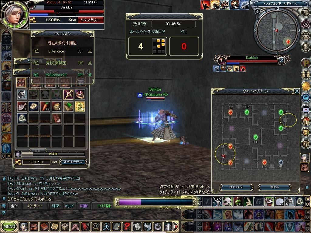 3位までのギルドが今回はまじめにベース取ってると予測、この場合意外にど真ん中すいてたりします・・w