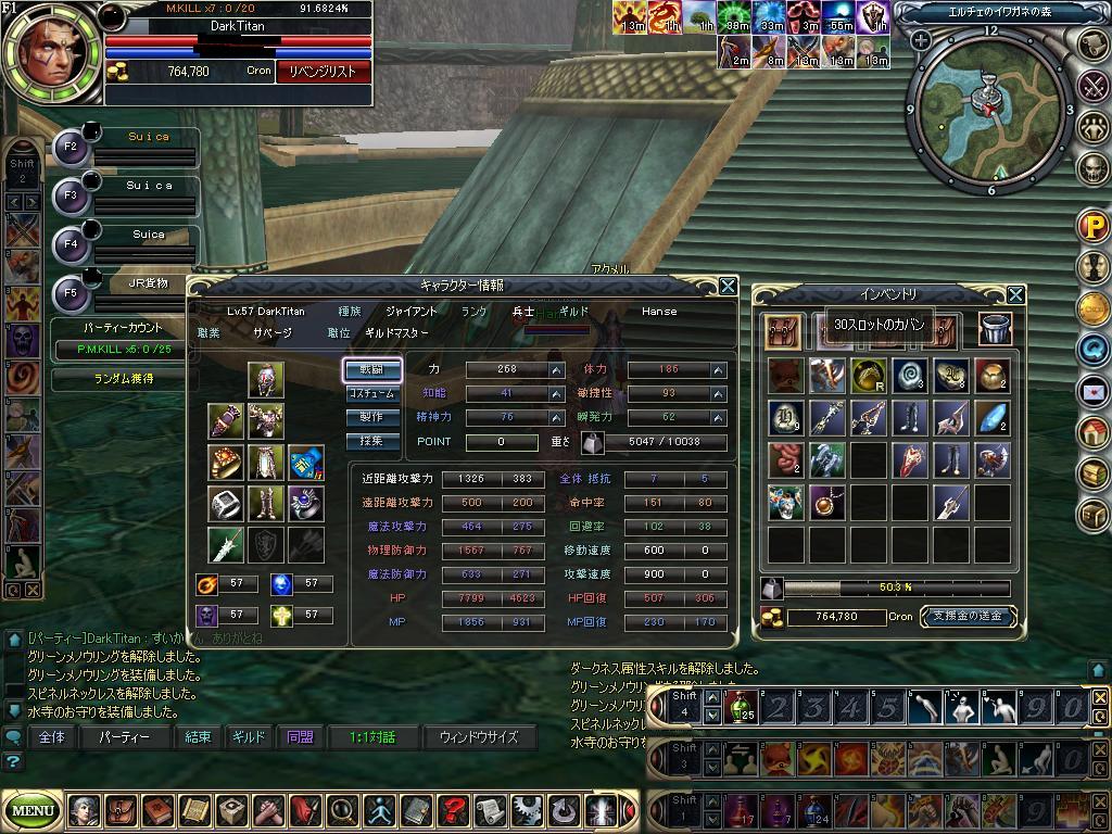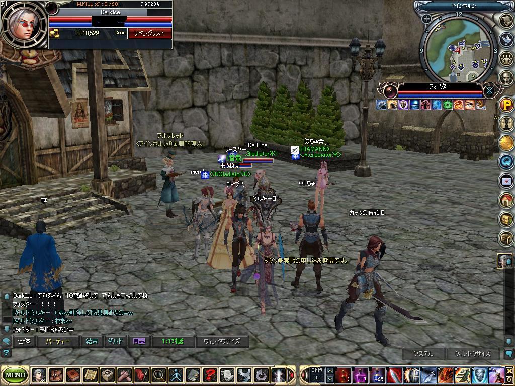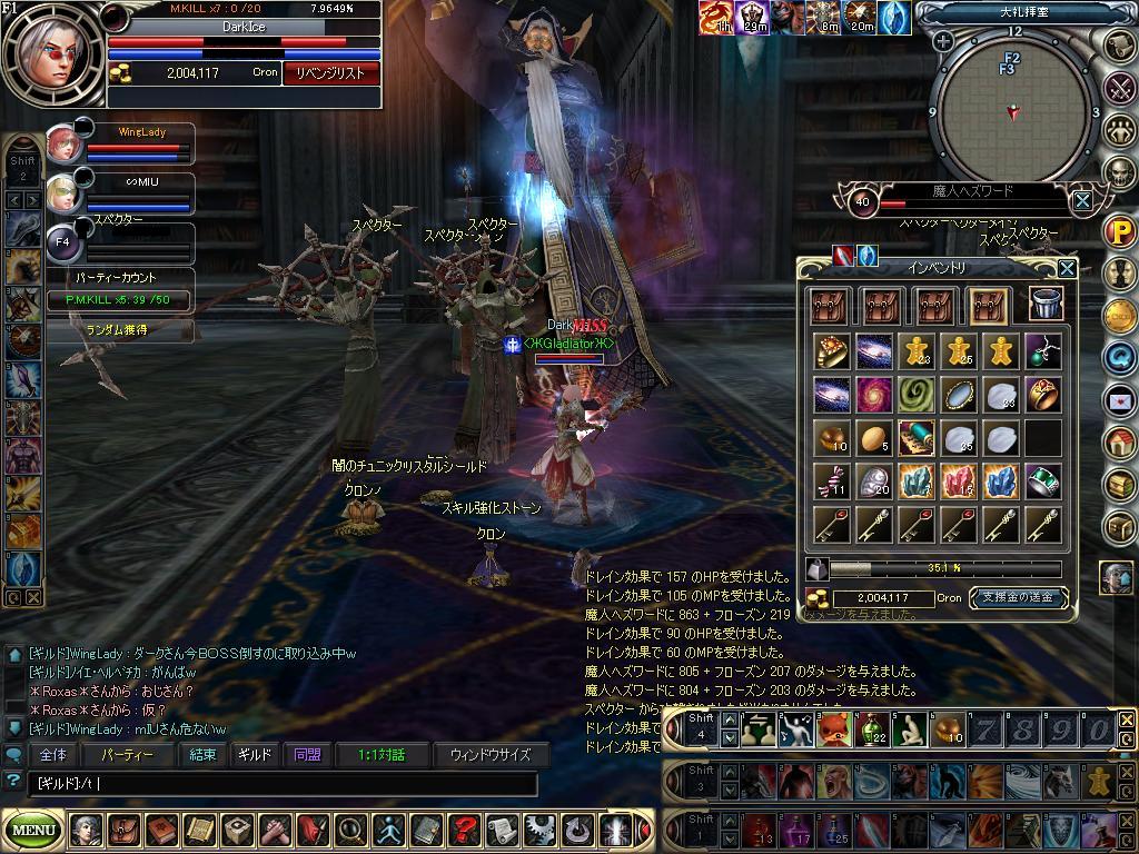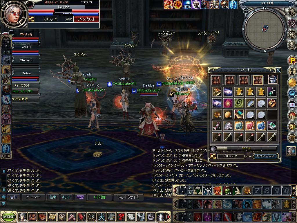 元々 悪霊でギルメンのMIUさんのレベル上げするときに PTさそったのが最初で この人自作PCが趣味で 仕事もPC関連で海外とかいったりきたりしてます。稼動PC6台あるんで自宅が ホワイトベースのコクピットみたいらしいです。