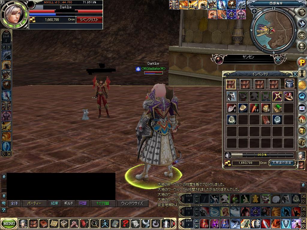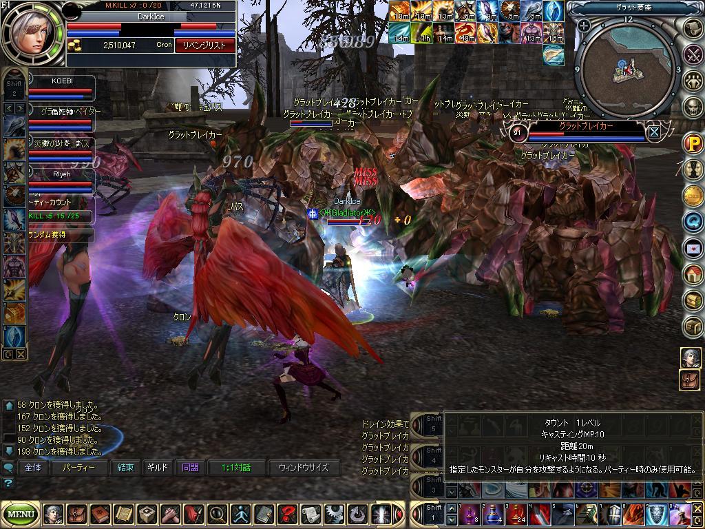 グラッドの中心で愛を叫ぶ図 ギルメンのみんなにレベル上げを手伝ってもらった図です