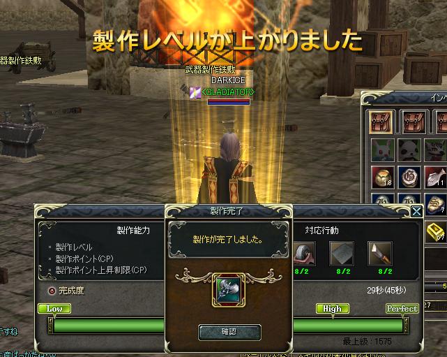 武器製作やっと上級にLvUP