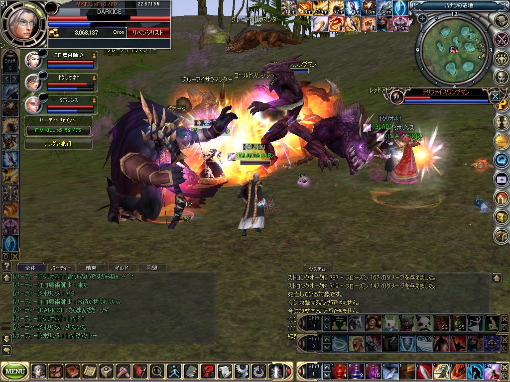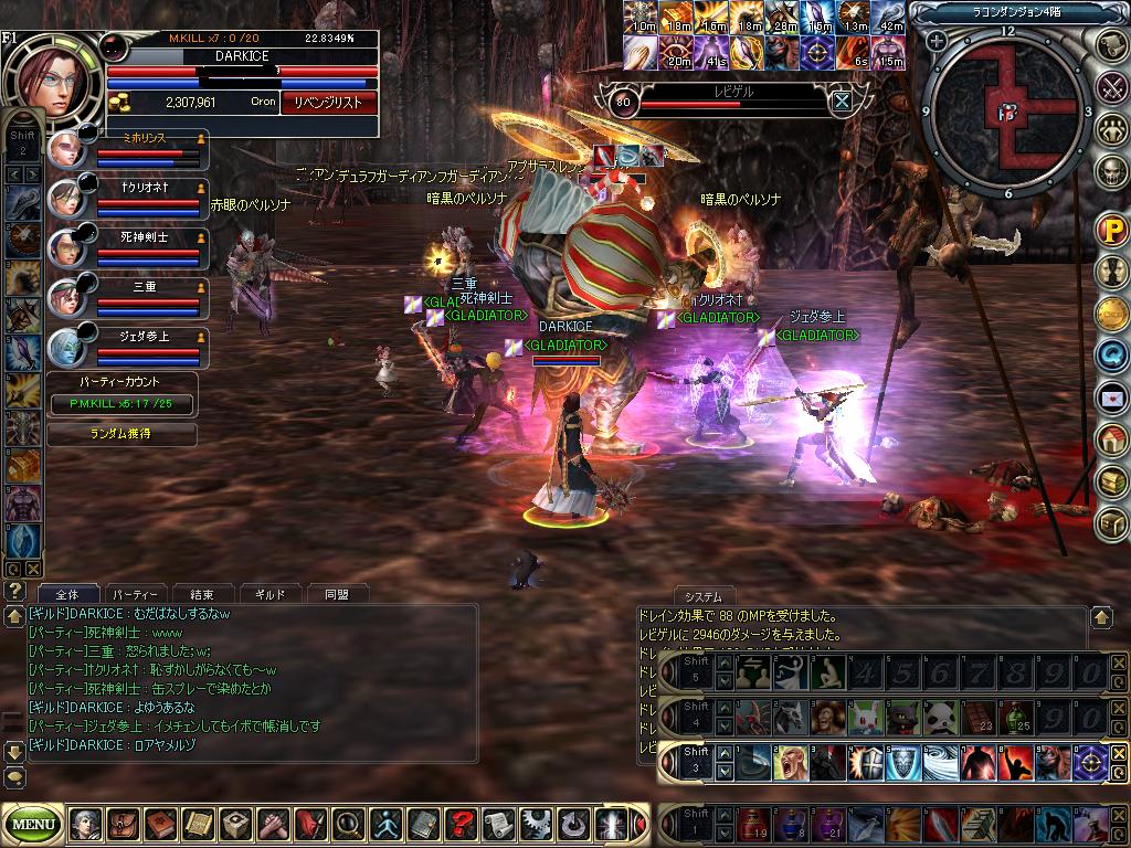 ハーフタイムに ギルメンPKされたとかいってたので リベンジで飛んで死にました・・w