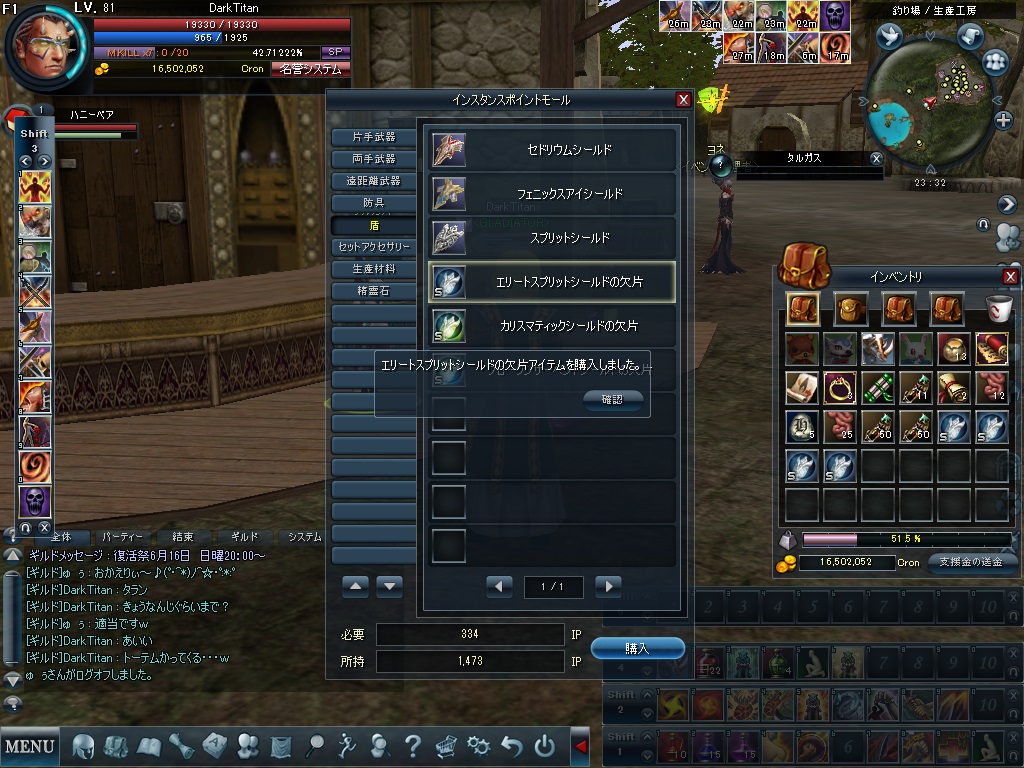 盾のケッペンを買い捲り 休止前盾は 狩で手に入るもののけっぺんのドロップが悪く詰まってました。