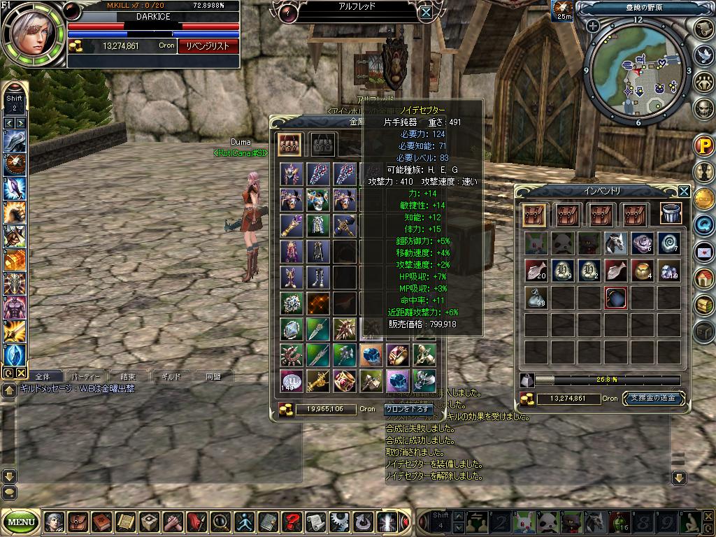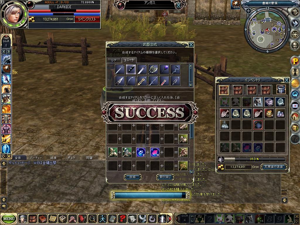 dyuatasprit0111.JPG変な時間におきたりしてたので 倉庫の整理やギルド金庫の整理にあけくれ、眠ってた部品を 合成・・w