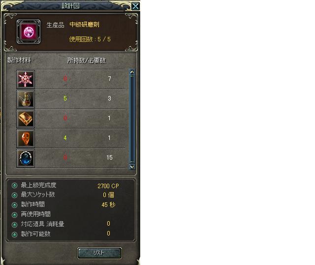 研磨剤は作成上限が 5回で決まっており 5回作ると消えます。