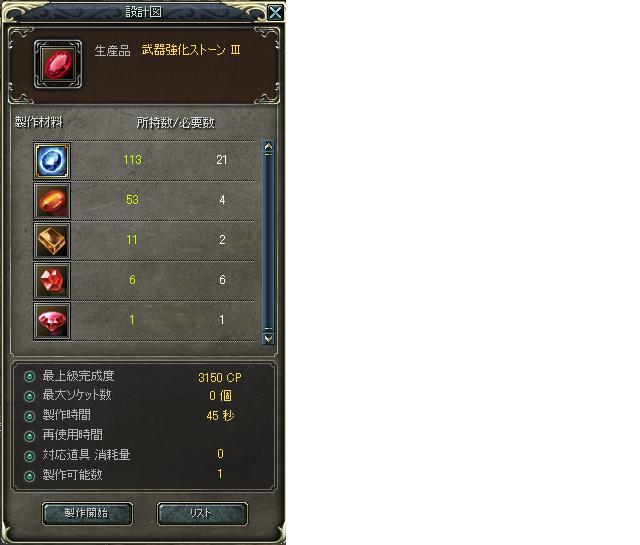 なので サファイアの使用数が防具強化の3個に比べると3倍以上の使用数。