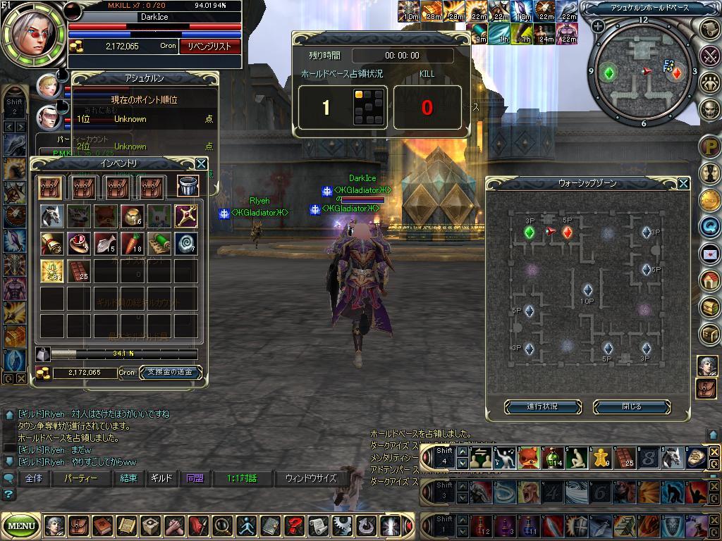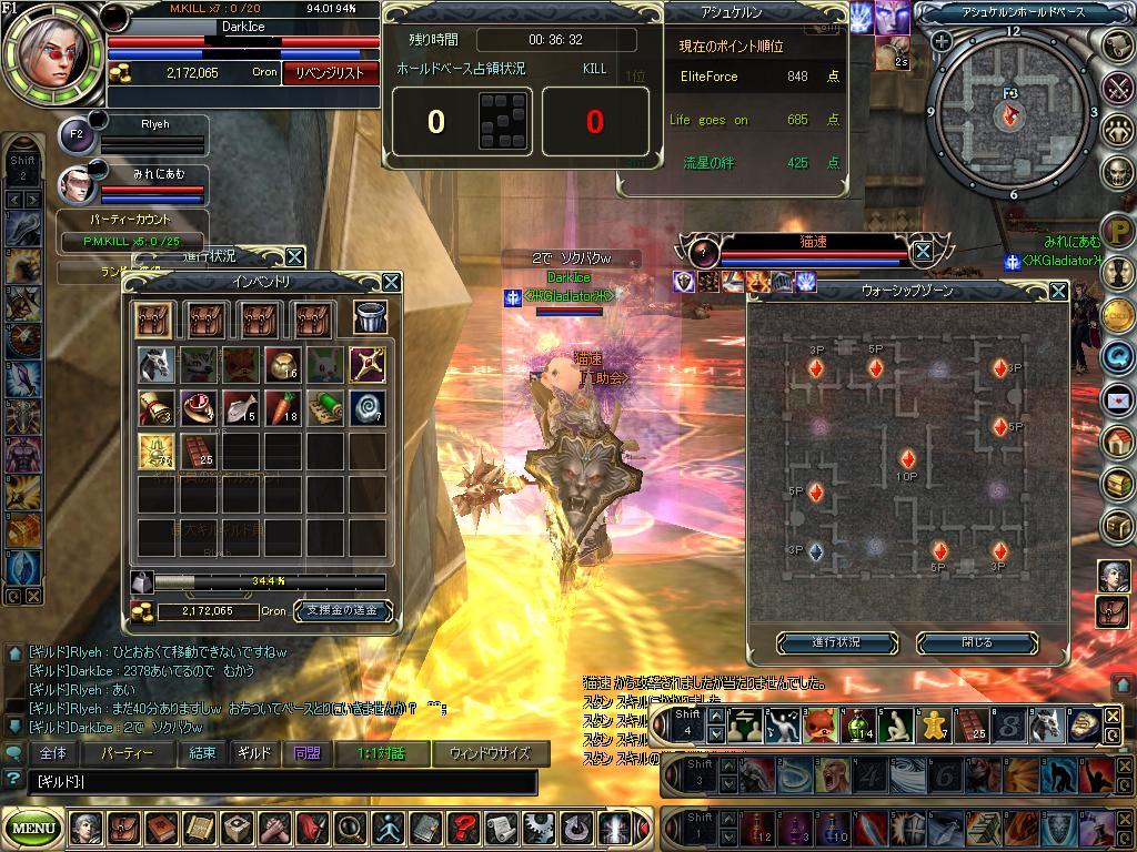 ギルメンが中にいる時は私は外で指示待ちの 波動攻撃 波→小波→波→小波で 常に誰かは中の情勢を分かるように移動で、とにかく相手の隙を見つけて ベース確保で動く作戦。