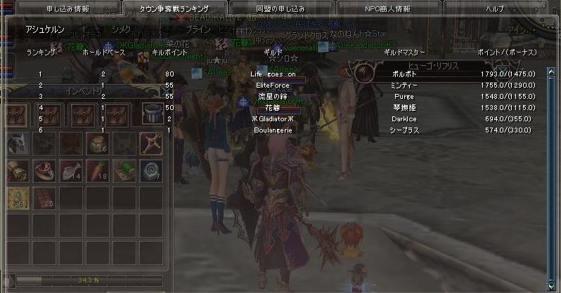 4位までのギルドは良く聞くギルドで占めて終わりましたが、3人+ヘルプで 5位は大健闘です。