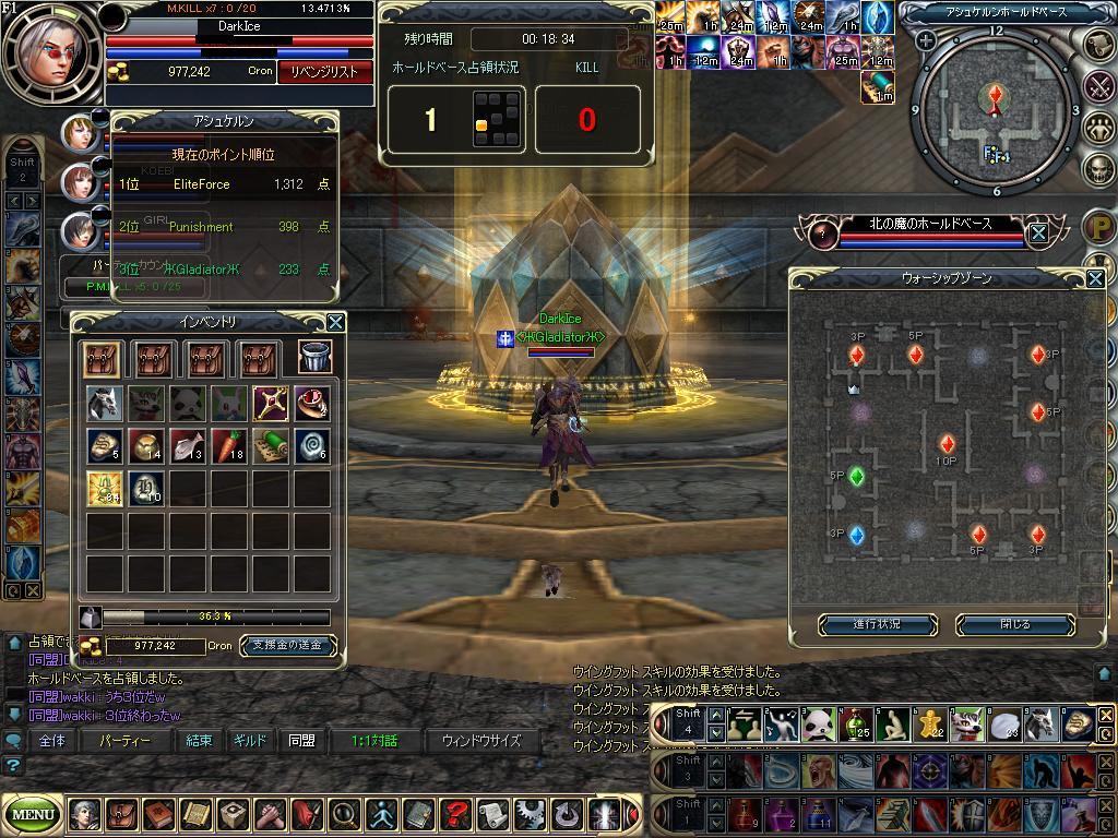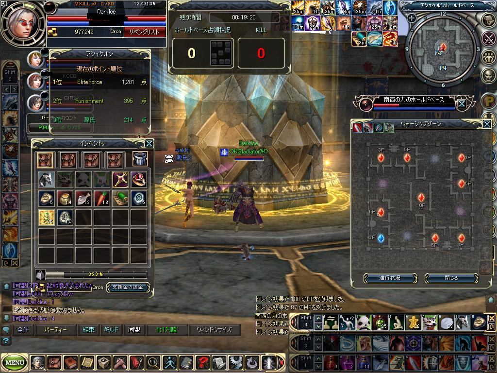 さてここからが きつい時間帯 今回はじっくり準備してからまとまって中入りましたが、バフで時間かかり 全員で中入っても入り口ででかいギルドに待機されるとワンプチで死ねるので動くことさえ無理な状態になります。