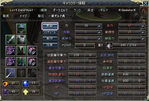 装備は初心者が間違ってつくったらという設定なので取得装備のみです。