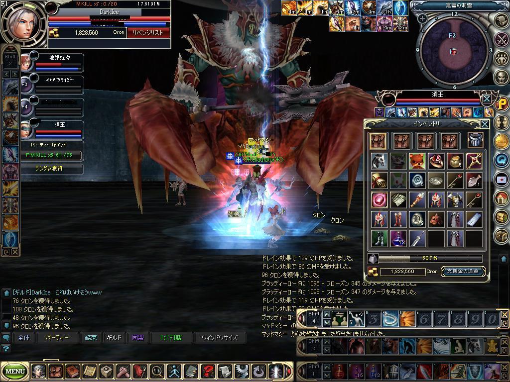 須王さんを上げる側と 80台は調整いれてドロップメインにやっていたのですが、どうやらMOB数は一定なので、2PTでたたくと数が少ない場合は 互いにさほどメリットもないので 隣の部屋とに分けることしました。