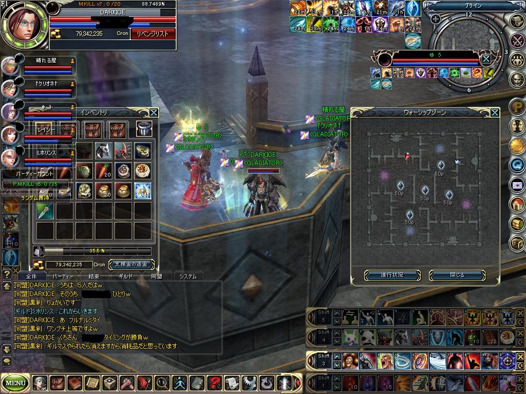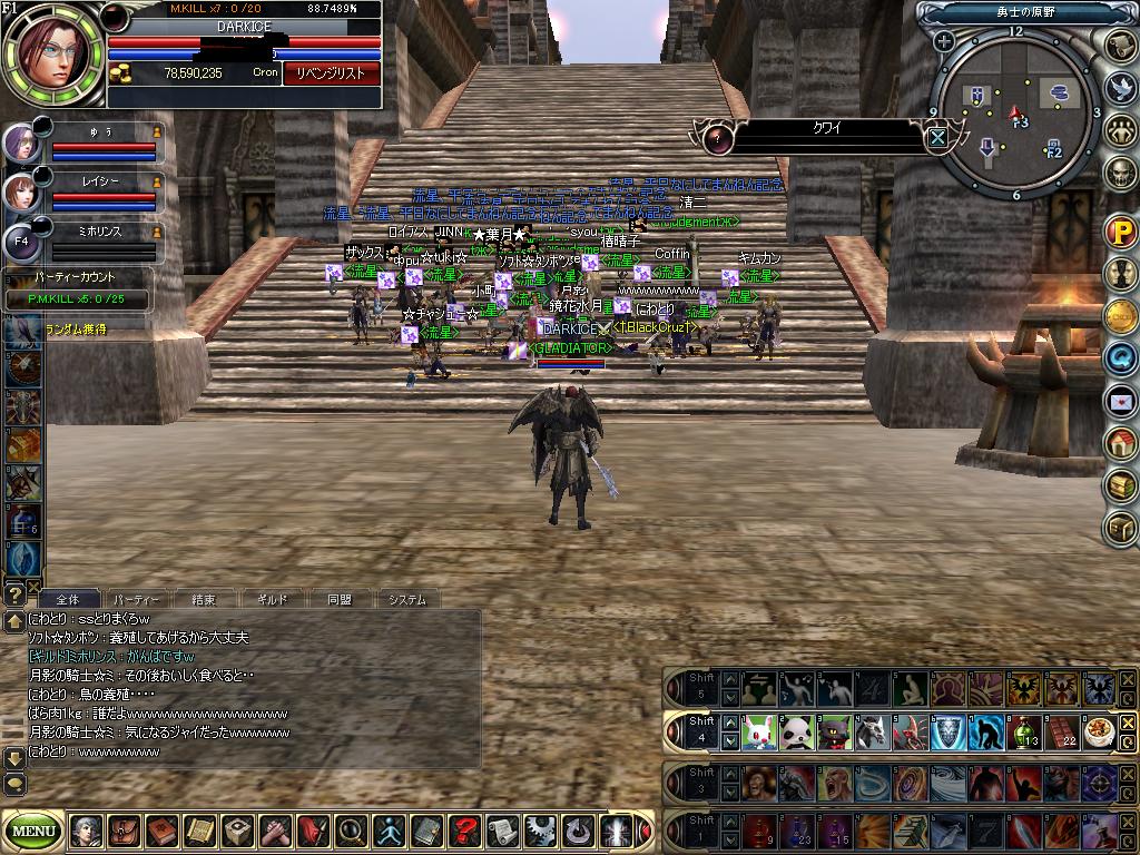 少し昔は 月影さんの謎のシロチャと ばら肉氏が せこせこフットでキル稼いでたイメージのギルドでしたが 今では大所帯ですね・・・w