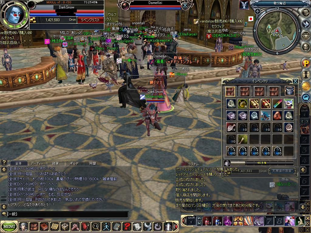 (ダークさんも一度狩場で見かけたのですが、やはり声かけられなかったです・・・w)