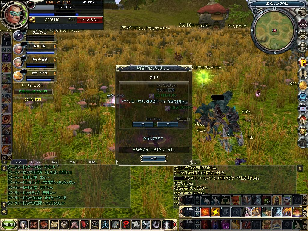 新サーバーできるとBOTがかなり増えるはずなんで PKするなら新サーバーはオススメなんですが、いかんせんPKする人の大部分は PTぶっ壊して大勢相手に格下相手にソロで俺Tueeee!ってのが 目的のようです。