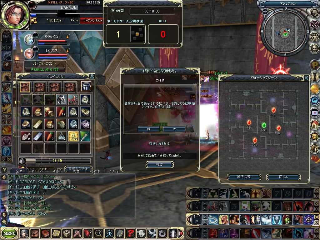 まあ ベースを叩いては見るが、参加ギルドも人数も多いので襲われます・・w
