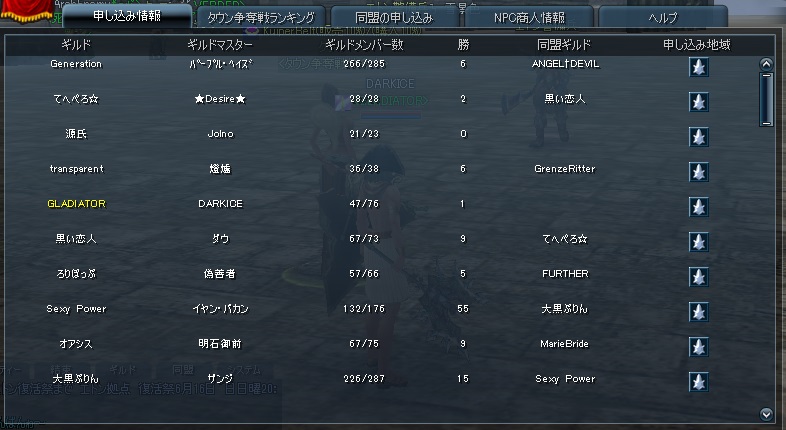 昨日は WB出場ギルドを見ると うちの一回目の同盟が 申請してたので ひさしぶりだしあえるかな