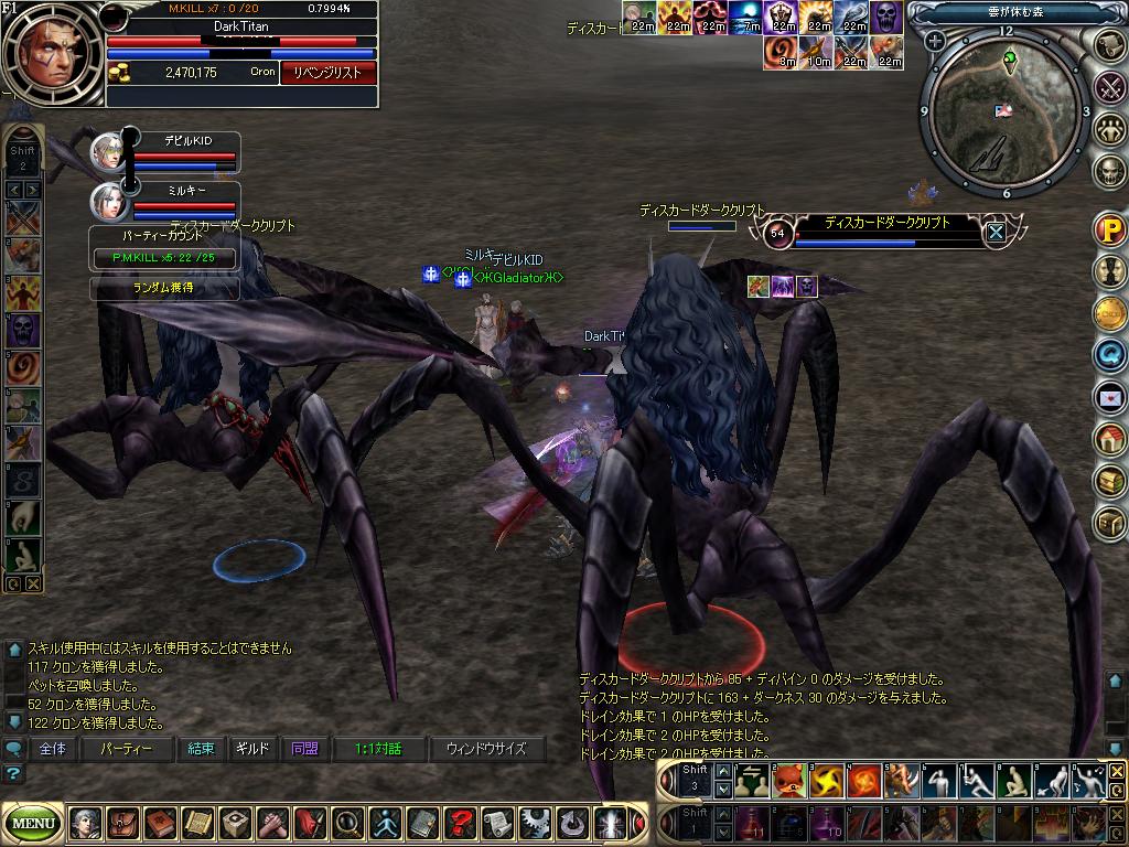 夜は10時よりタンタンイベント予定でしたが、人数不足のため急遽蜘蛛女でまったり狩りしました。