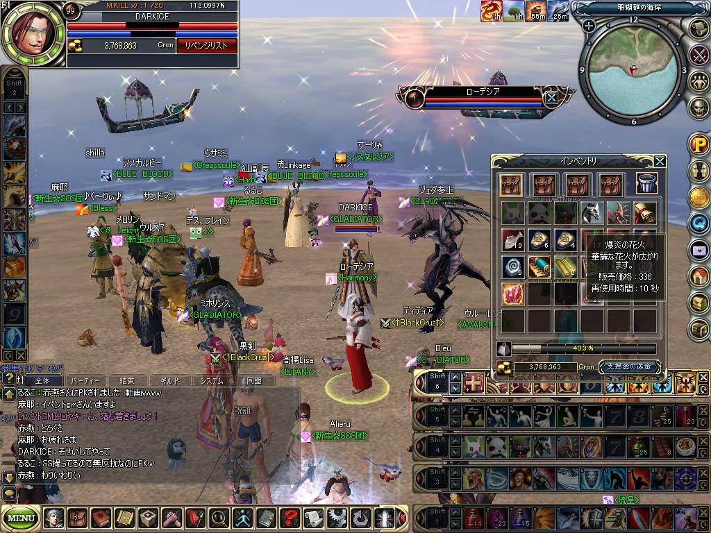 ネイさんがいつもよりIN遅くまにあわんかったので 余った花火を黒さんが渡してバンバン打ち上げしてました。