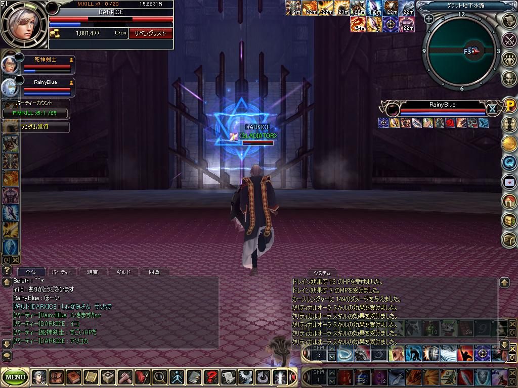この後 狩場見つけて狩してましたが 若干危険な物の 魔法もいないとこあるんで5F物理の少し↑って感じでレベル上げにはいい場所ありますね・・w